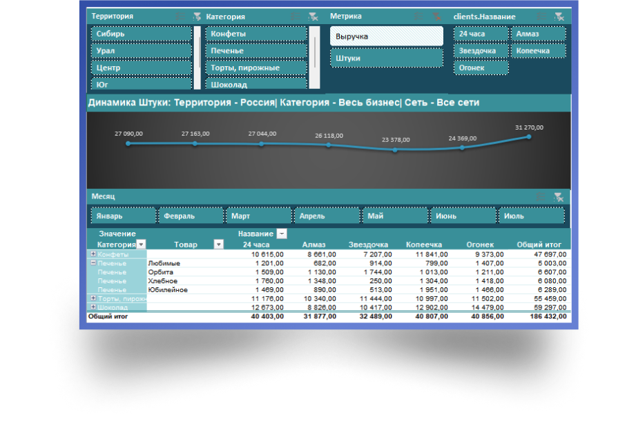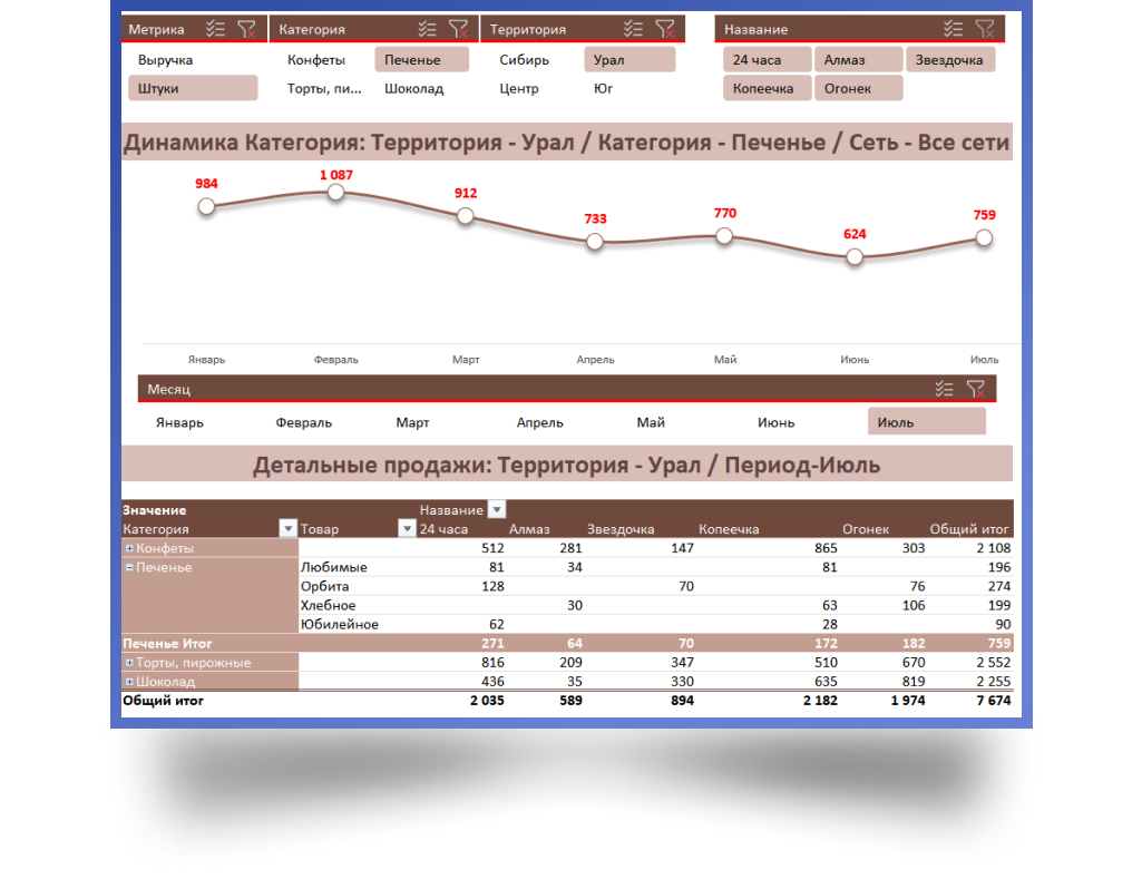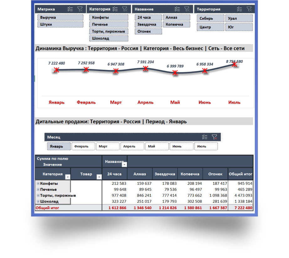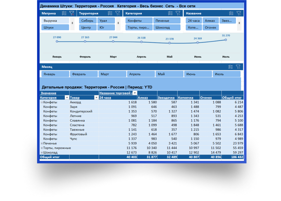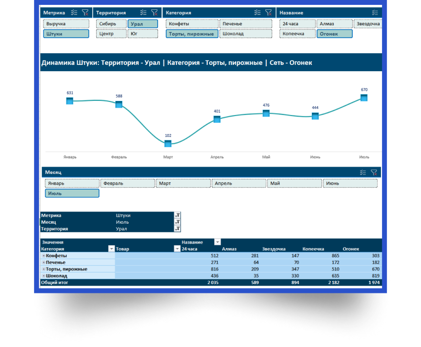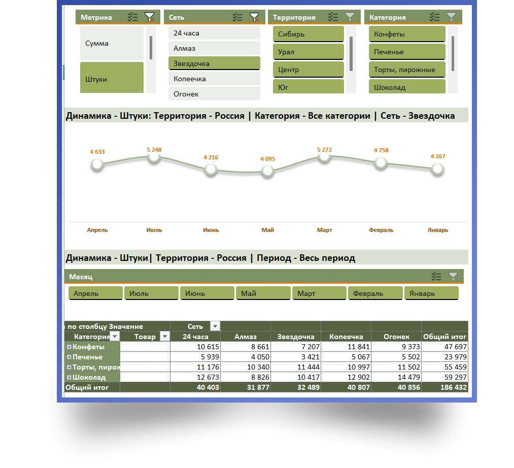После обработки в Power Query данные подходят для создания интерактивного дашборда, обновление которого будет занимать несколько секунд!